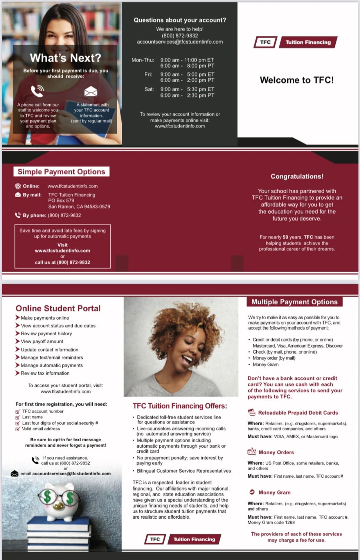 For nearly 50 years, TFC Tuition Financing has been a respected leader in student financing, helping students to achieve the professional career of their dreams. TFC makes education affordable for all students at the Final Touch Barber Academy with a wide range of payment options, and an online portal to manage your own account. Financing is available to all students even if you don’t have great credit or a strong financial history. We understand that many students are working towards improving their future, and are working hard to make education affordable to everyone. To get started with TFC Student Financing, you simply contact your Director and ask them to help you set up a payment plan that works for you.